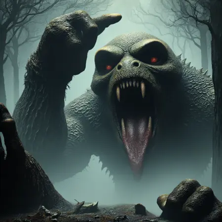 LORA 所营造的氛围强烈偏向黑暗幻想,现实与超自然的界限变得模糊。空气冰冷而沉重,仿佛有看不见的眼睛在阴影中窥视。环境呈现出一种超现实、近乎梦境般的质感——树木扭曲变形,光秃秃的枝桠如枯骨之手伸展,浓雾贴地弥漫,掩盖着下方的秘密。