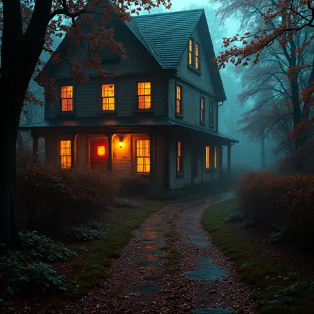 黑暗幽灵幻想将用户带入一个世界,在那里,万圣节不只是一个节日,而是一个活生生的、呼吸着的实体——一个世界屏障变薄、亡者领域与生者世界交融的季节。它召唤出仿佛永远处于黄昏的景观:天空染成深紫如淤伤,远处昏暗的橙光在暮色中微弱燃烧。
