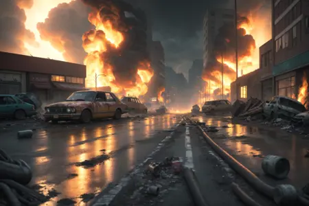 About 3A gun battle class, urban ruins, nuclear/missile outbreak when the space laser-guided strike targets, war-induced apocalypse, I want to be able to make a game reference for this. This is the first lora I've released, but not the first time I've done it.