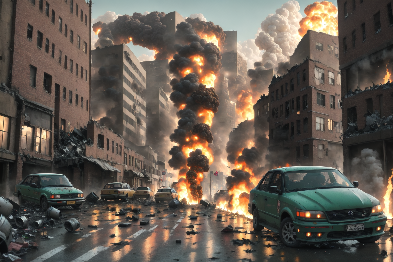 关于3A枪战类、城市废墟、核武器/导弹爆发时太空激光制导打击目标、战争引发的末日场景,我想制作一个游戏参考。这是我发布的第一个LoRA,但并非第一次制作。