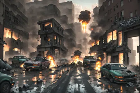 About 3A gun battle class, urban ruins, nuclear/missile outbreak when the space laser-guided strike targets, war-induced apocalypse, I want to be able to make a game reference for this. This is the first lora I've released, but not the first time I've done it.