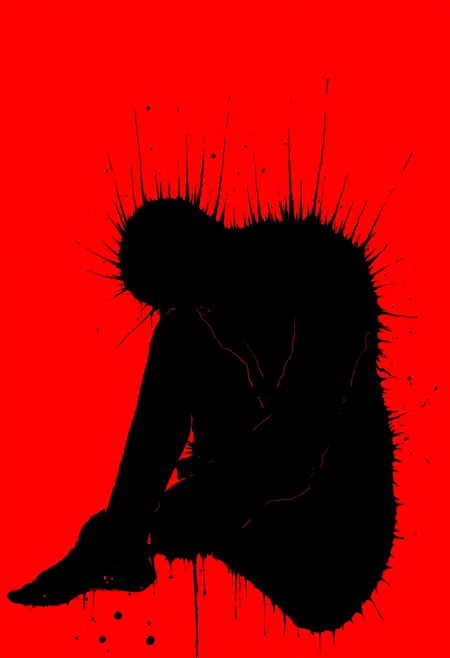 red theme, horror (theme), monochrome, simple background, red background, black background,
