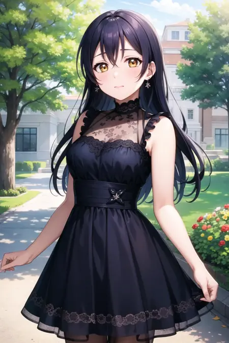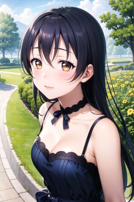 Tags you'll need: 1girl, solo, sonoda umi, blue hair, yellow eyes,