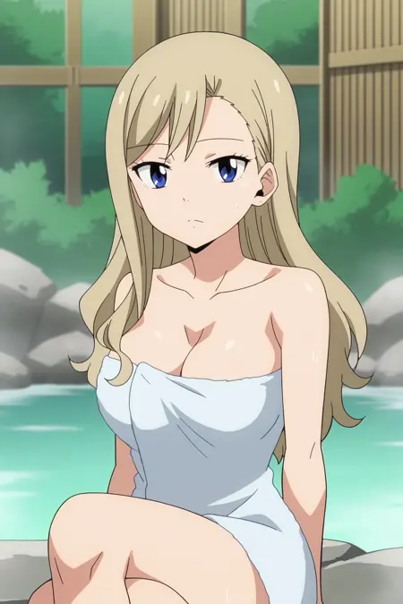Rebecca毛巾服装 | Rebecca Bluegarden,蓝眼睛,长发,金发,大胸部,乳沟,裸体毛巾,赤脚