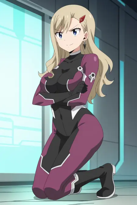 Rebecca白紫黑套装 | Rebecca Bluegarden,蓝眼睛,长发,金发,大胸部,紧身衣,发饰,珠宝,耳环,手套