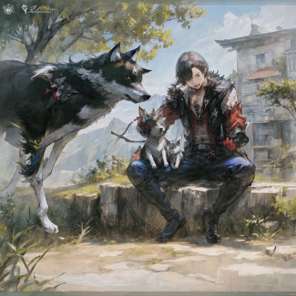 Not limited to character art, animals/creatures like summoning beasts are also supported in this style, e.g. add wolf, dragon, phoenix, etc to the prompt