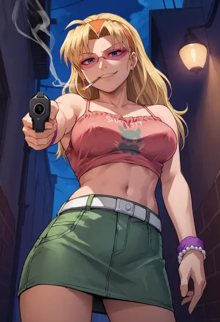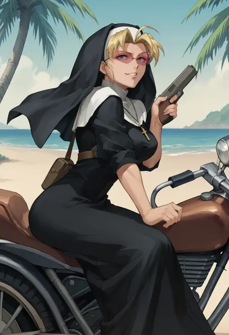 リップオフ教会のエダ姉(別名:エディス・ブラックウォーター)、「ブラック・ラグーン」より。重み1.0で最も良好な結果が出ます。Pony Diffusion V6 XLでトレーニング済み。リクエストフォーム
