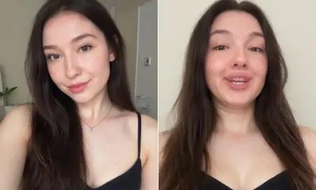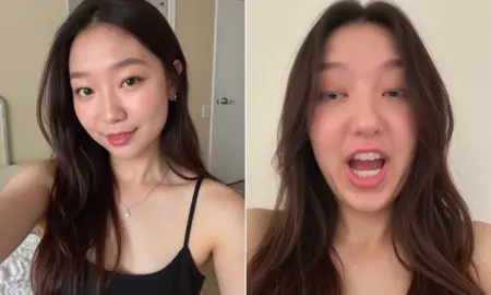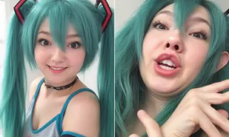 このコンセプトは、従来のセルフィーとユーモラスで誇張された顔の表情との遊び心のある比較です。各画像セットには、対照的な2枚の写真が表示されています。