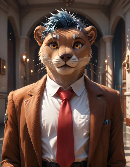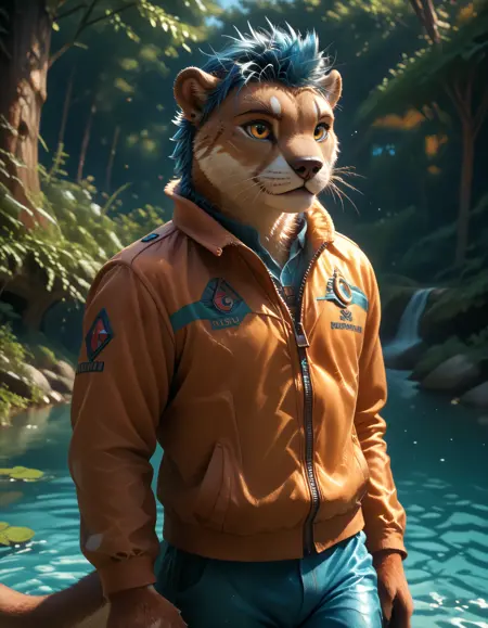 Ottis The Otter는 제 OC입니다. 푸른 머리카락, 노란 눈동자, 갈색 털을 가진 수달로, 어깨에는 회색 반점이 있습니다.