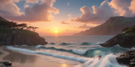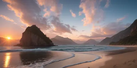 Start generating with text prompts (like “a tropical beach with palm trees”).