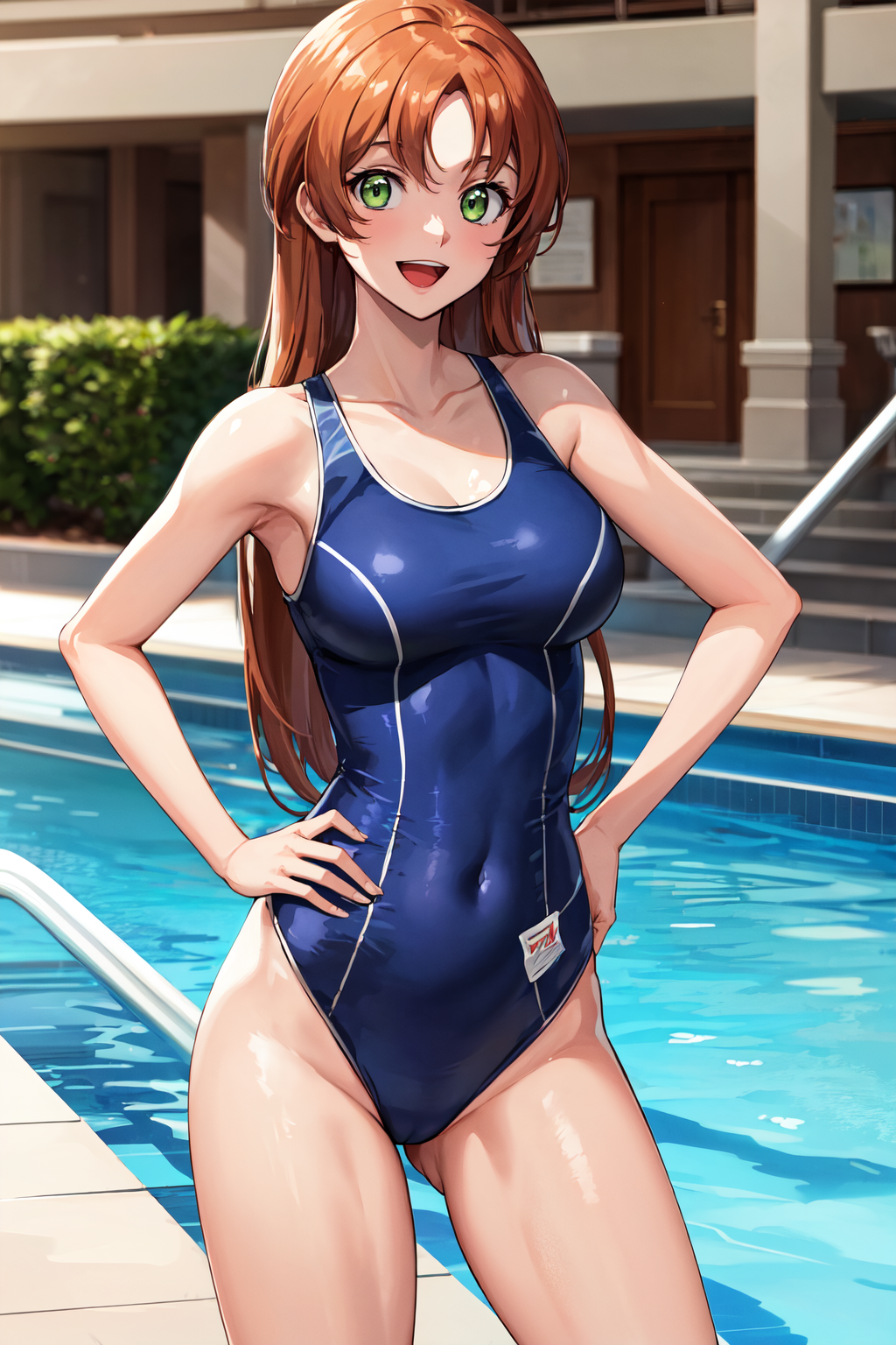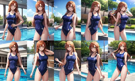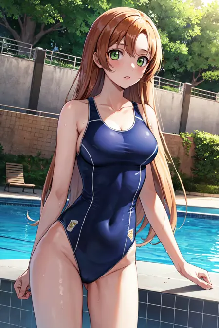 服装2hmshir, 长发, 绿眼睛, 连体泳装, 学校泳装, 竞技泳装