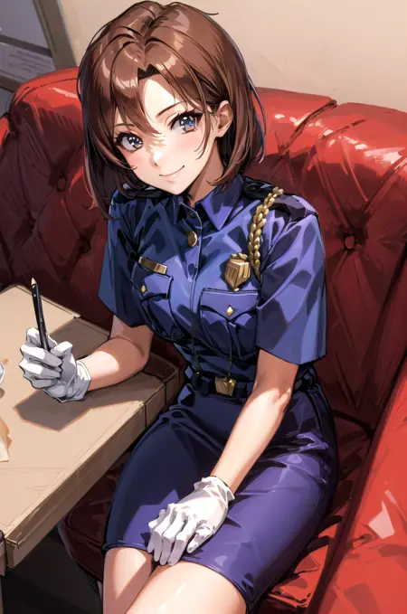 Short sleeve uniform - tsujimoto natsumi, police uniform, blue shirt, short sleeves, white gloves, pencil skirt