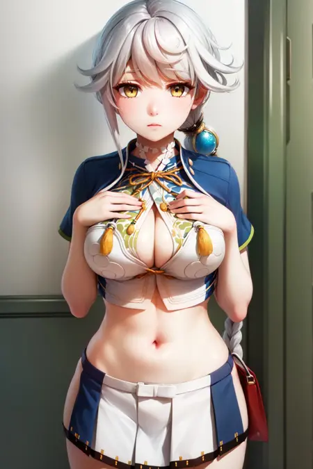 트리거 + 외모: unryuu, 비대칭 머리카락, 단일 땋은 머리, 머리장식