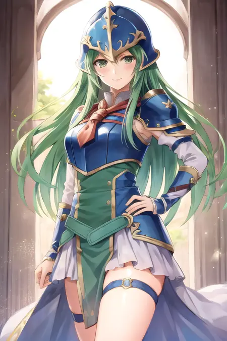 약 0.8의 가중치가 잘 작동합니다. 트리거 단어는 'nephenee fe'입니다. 기본 옷차림에는 'skirt', 'thigh strap', 'helmet', 'armor', 'thigh boots', 'breastplate'를 추가하세요.