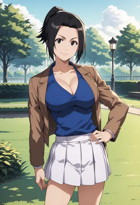 基础提示词:1girl, karinkurosaki, black eyes, black hair, ponytail, short hair