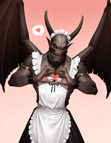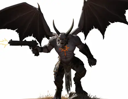DaemonPrince, 黄色眼睛, 无瞳孔, 角, 翅膀, 持剑,