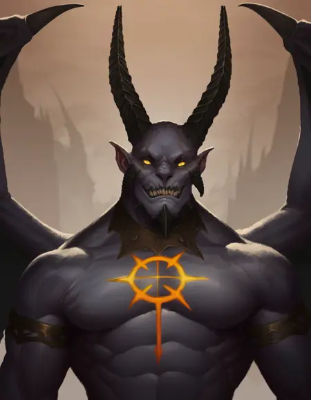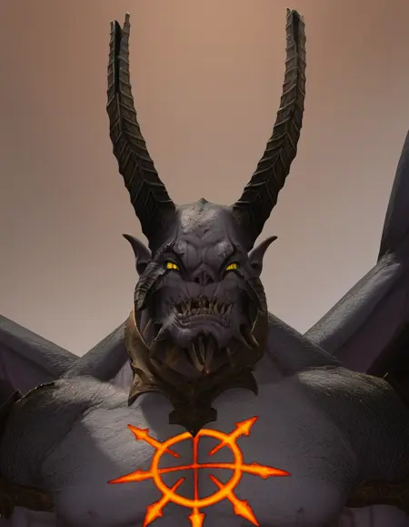 DaemonPrince, 노랑눈, 동공 없음, 뿔, 날개, 검 들고 있음,