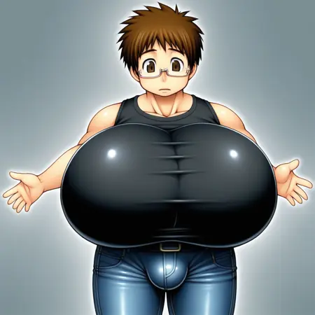 Olly Black, busty boy, short hair, brown hair, brown eyes, glasses, gigantic breasts,
