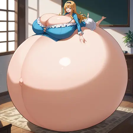 V1 -> V2: Doubled number of training steps, bellies are generally bigger, use "on stomach" to let a girl lie on her belly. Reduce LORA strength if the bellies are too big or the images are overbaked.