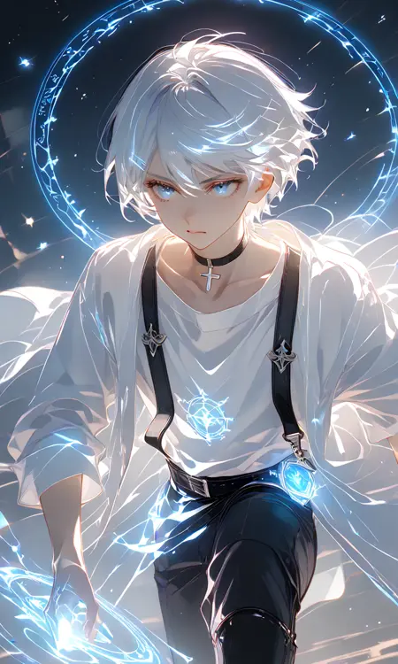 Wirbel, 1man, silver hair, short hair, short bangs, slant eyes, pale-blue eyes,