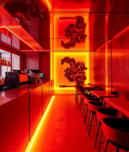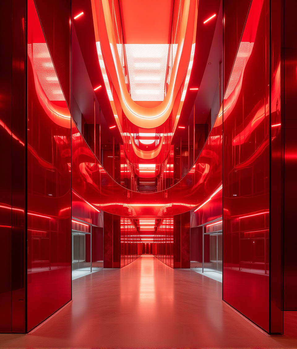 「ミラー、ガラス、グラデーションカラー、反射素材」で構成された簡潔な空間をどれでも作成できます。
