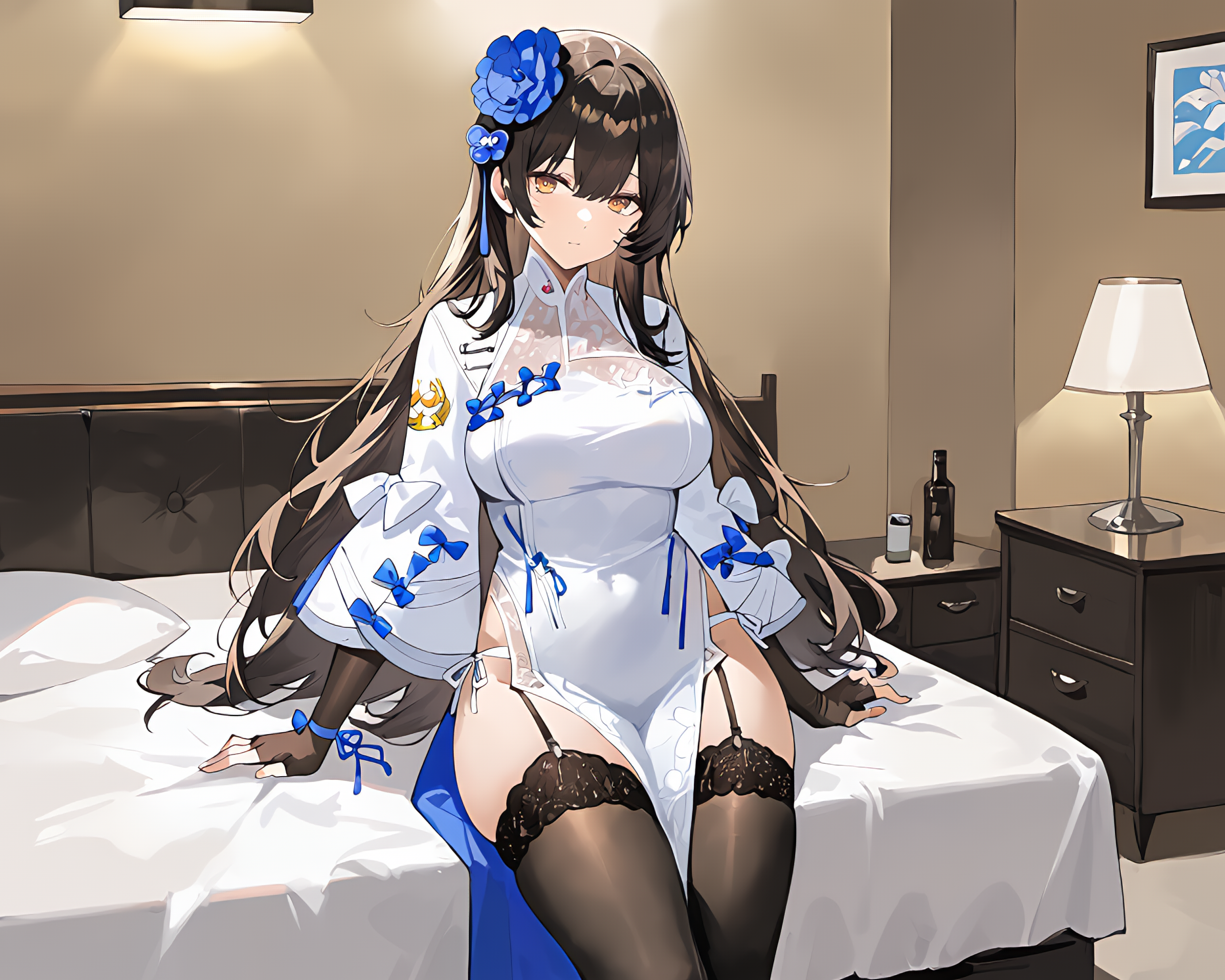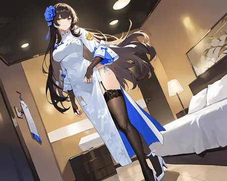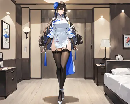 1girl, gf2gtype95, gf295chi2 hair ornament, gf295chi2 costume, very long hair, gf295chi2 fingerless gloves, 2type95 thighhighs, ankle ribbon, garter belt, gf295chi2 high heels, gf2 side-tie panties,