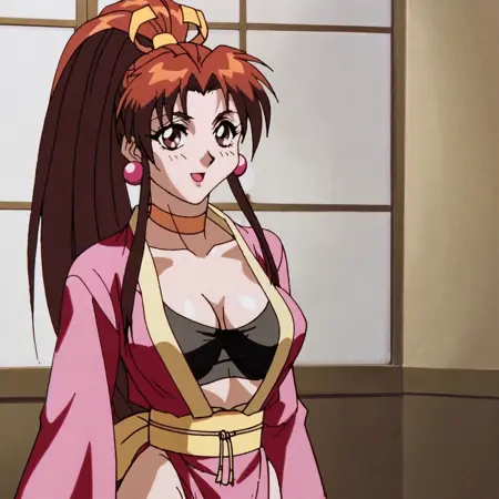 触发词:Mai94Movie, 1girl, shiranui mai, 大乳房, 长发, 内衣, 马尾辫, 白色内裤, 骨盆帘, 露骨服装, 棕色头发, 深沟, 棕色眼睛, 复古风格, 日式服装, 1990年代(风格),牛仔镜头