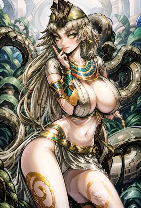 彼女を呼び出すには「SMTCleo」と入力してください。「egyptian, huge breasts, snakes, midriff」が参考になります。