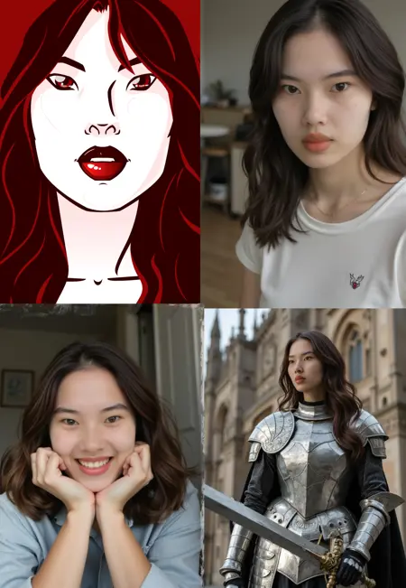 The photos weren't perfect, so I did a little editing in Affinity Photo. I had to stretch her lips a bit and remove her double eyelid. I also had to play with a few smiling images because the teeth came out poorly.