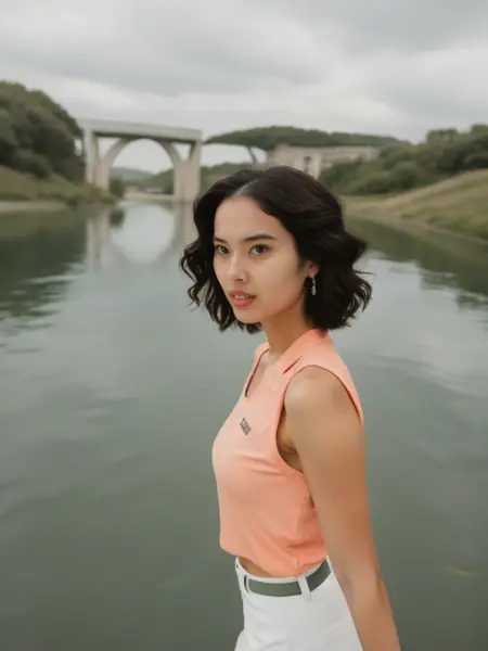 我在SD 1.5中对她进行了训练。之所以选择SD 1.5,是因为人脸转换工具在全身图像上表现不佳,而我想修正她的笑容。这时,我意外地收获了惊喜!由于我必须拉伸微笑时的牙齿,AI试图“纠正”为它所熟知的形态,反而赋予了她一个独特而迷人的微笑!