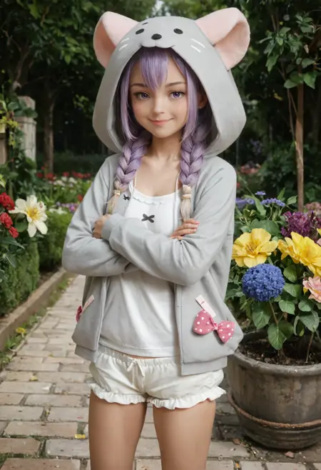 Everything workds pretty well except the bows on the hoodie outfit are a bit random. It's supposed to use "polka dot bow" but that often ends up giving polka dots elsewhere in the image too.