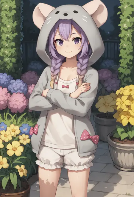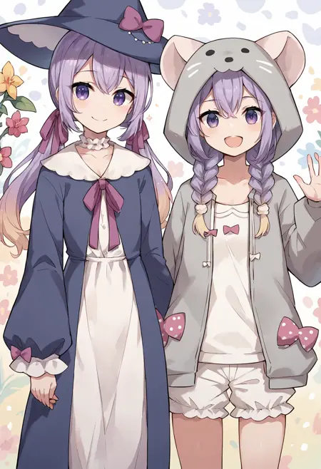 Everything workds pretty well except the bows on the hoodie outfit are a bit random. It's supposed to use "polka dot bow" but that often ends up giving polka dots elsewhere in the image too.