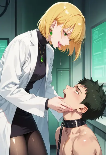 1女孩([你的角色],强势女性,凝视着他,吐唾面容,冷酷女孩,以吐唾羞辱,长唾液,白色唾液),