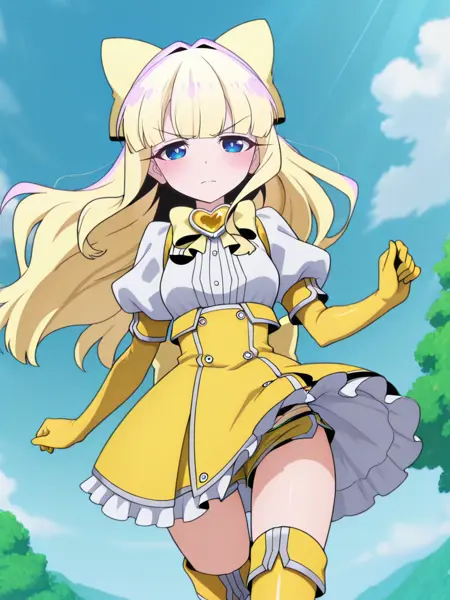 | 训练词汇 | tenkawa,blonde hair,blunt bangs,hair intakes,yellow hair bow,v-shaped eyebrows,blue eyes, anime screenshot,已复制! tenkawaschool,school uniform,serafuku,green sailor collar, yellow neckerchief, white long sleeves,green pleated skirt, black socks已复制! tenkawadaily,alternate costume,red choker,black t-shirt,white long sleeves,layered sleeves,short over long sleeves, red bracelet,midriff, red belt,belt buckle, jeans已复制! magiaSulfurdress,magical girl,yellow bowtie,heart brooch, puffy short sleeves shirt, vertical stripes,yellow elbow gloves,high-waist yellow skirt,buttons,frills, yellow thigh boots,已复制! |