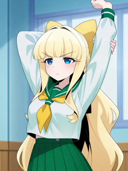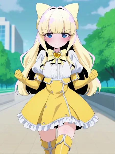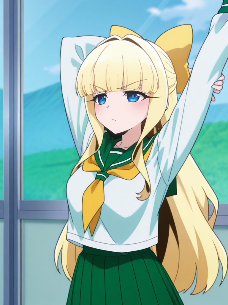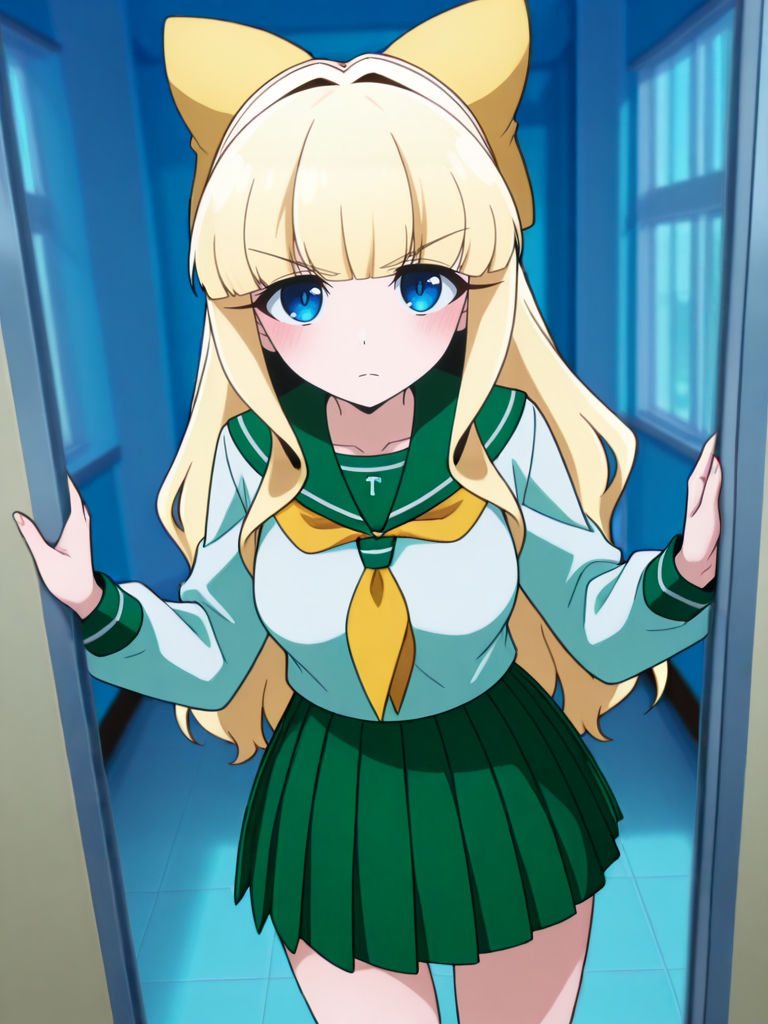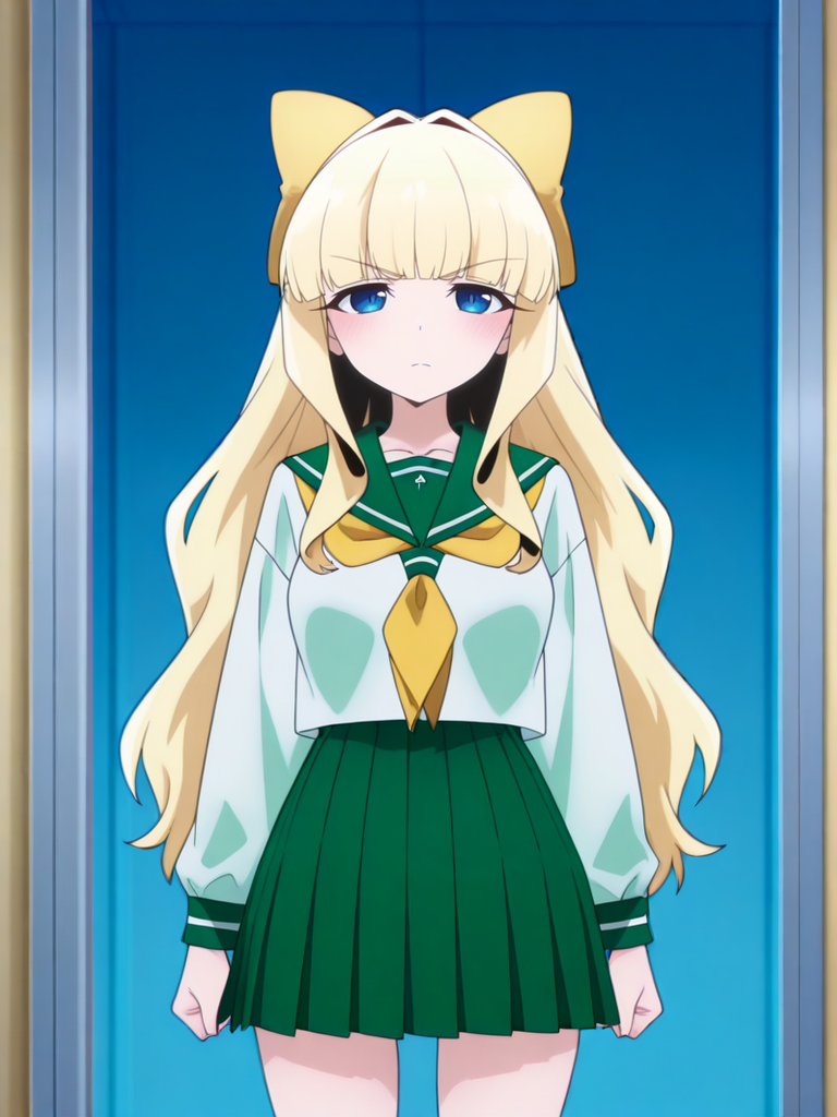 | 학습된 단어 | tenkawa,blonde hair,blunt bangs,hair intakes,yellow hair bow,v-shaped eyebrows,blue eyes, anime screenshot,복사됨! tenkawaschool,school uniform,serafuku,green sailor collar, yellow neckerchief, white long sleeves,green pleated skirt, black socks복사됨! tenkawadaily,alternate costume,red choker,black t-shirt,white long sleeves,layered sleeves,short over long sleeves, red bracelet,midriff, red belt,belt buckle, jeans복사됨! magiaSulfurdress,magical girl,yellow bowtie,heart brooch, puffy short sleeves shirt, vertical stripes,yellow elbow gloves,high-waist yellow skirt,buttons,frills, yellow thigh boots,복사됨! |
