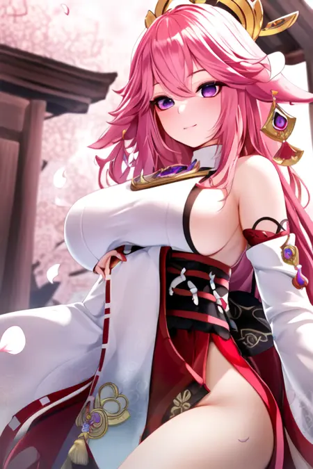 | 학습된 단어 | ((masterpiece)), (((best quality))), ((ultra-detailed)), ((illustration)), ((disheveled hair)),1girl, breasts, long hair, pink hair, solo, petals, very long hair, bare shoulders, looking at viewer, sideboob, wide sleeves, purple eyes, large breasts, cherry blossoms, detached sleeves, nail polish, hair between eyes, blush복사됨! |