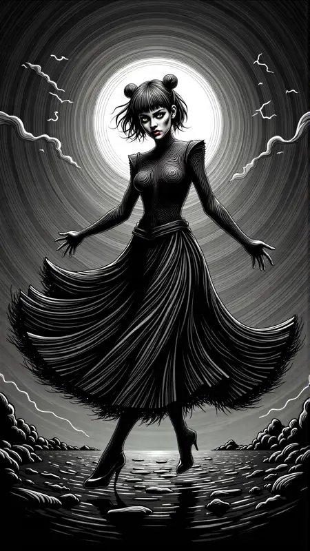 예시 프롬프트: Monochrome lineart dark horror boat at seas lora:VorticaFlux:1