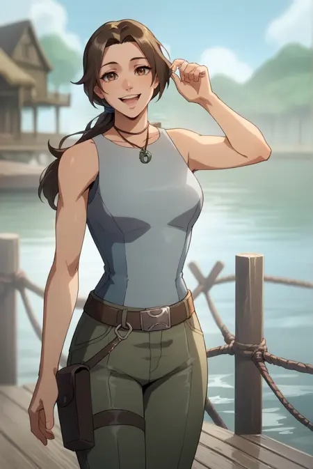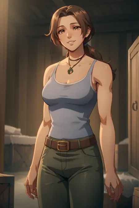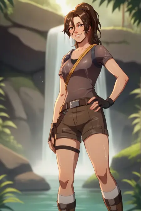 <lora:LaraCroftXL-v1-07:0.7>, ChopioLara, brown hair, brown eyes, looking at viewer,