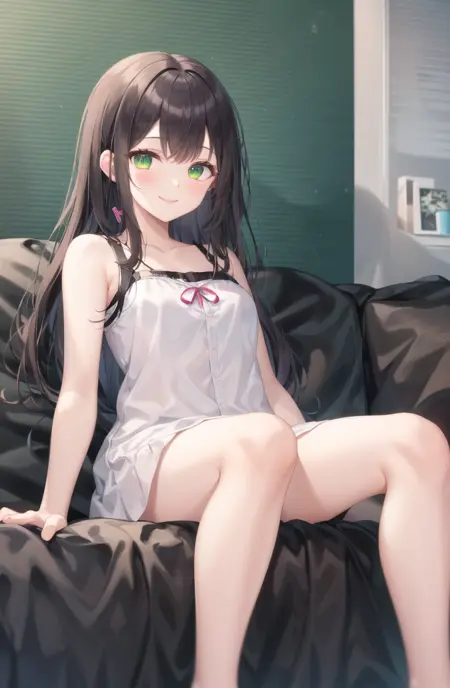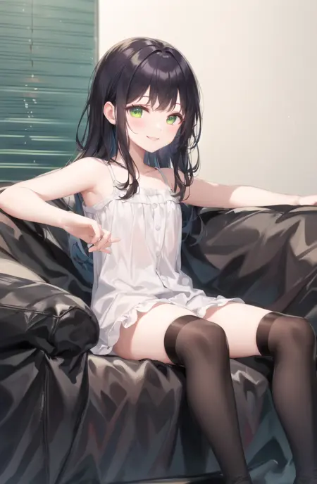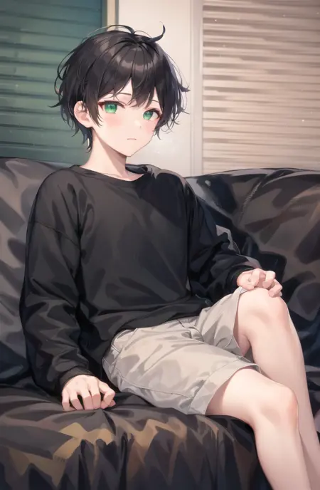 recommend prompts: lora:concept\_yjsnpi\_interview:1.35 ,concept_yjsnpi_interview,shutter, couch, on couch, green shutter, grey sofa