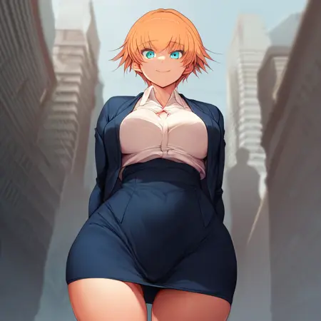 (( lora:hime-chan:1 , hime-chan, short woman, thin waist, wide hips, beautiful skin, piercing aquamarine eyes, clear eyes, bright pupils, beautiful eyes, beautiful orange hair, beautiful short hair, hair beetween eyes, bangs, huge and shaggy breast, beauty, extraordinary beautiful woman, attractive woman, super sexy woman, lustful body, sexy woman with seductive obscene body, sensual body, voluptuous body, no piercings, no piercing, ))