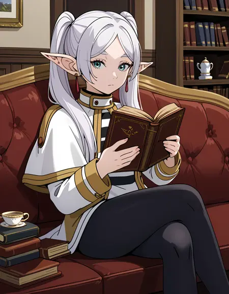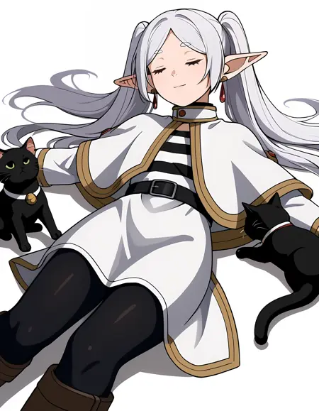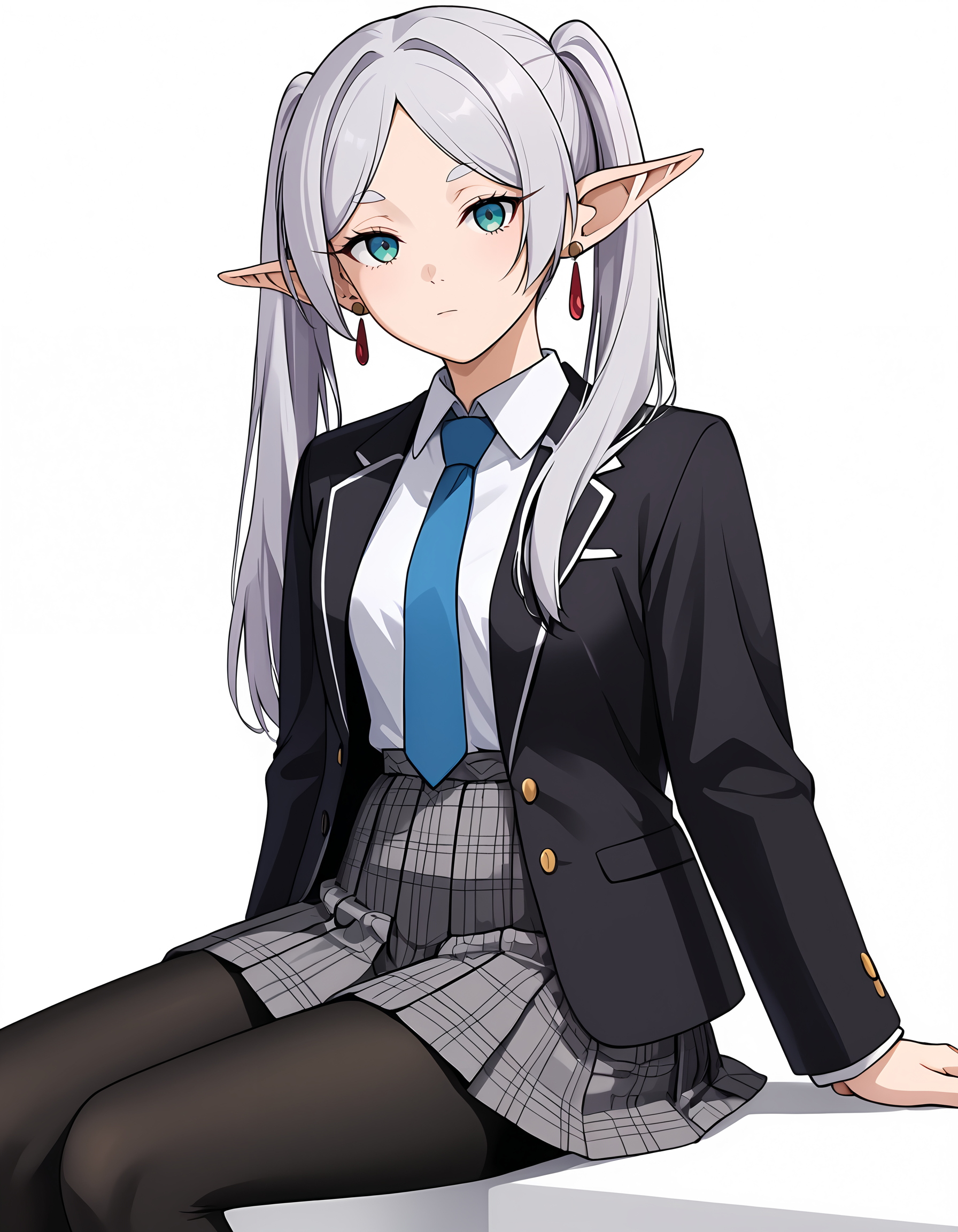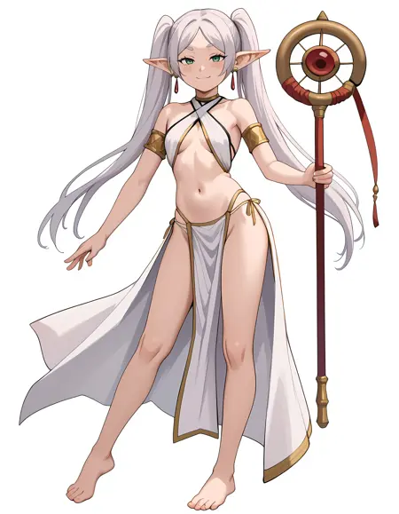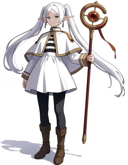 主要服装:白色短斗篷、耳环、黑色连裤袜、金色镶边、长袖、条纹衬衫、条纹衣物