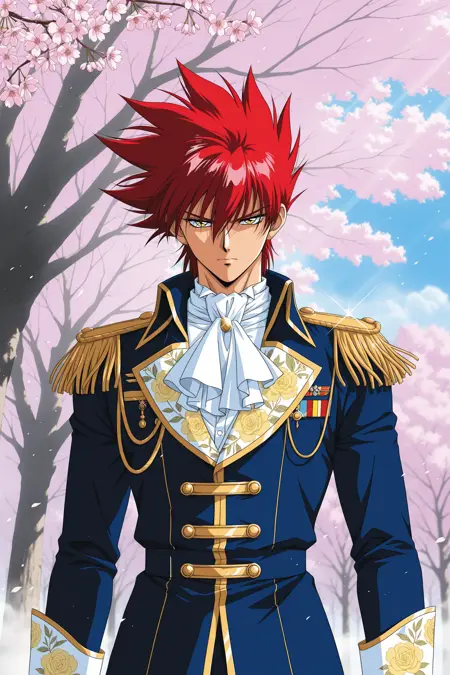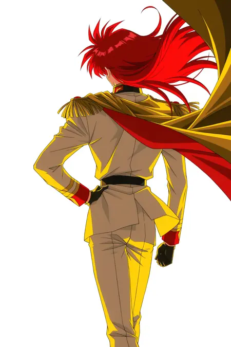 如果你想保留他原本的配色,请在提示中加入“红发”和“黄眼”。