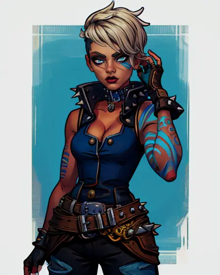 Tyreen, white hair, blue eyes, two-tone hair, undercut,