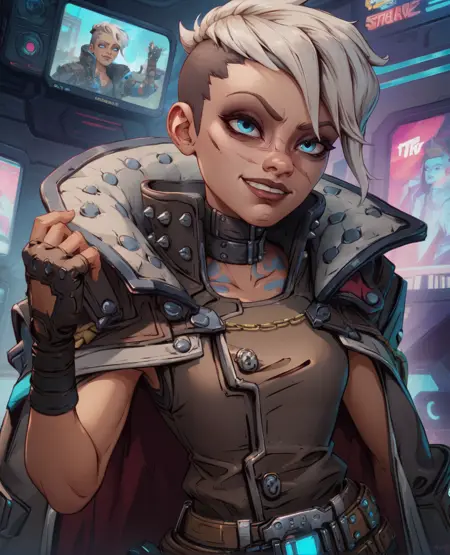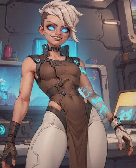 Tyreen, white hair, blue eyes, two-tone hair, undercut,