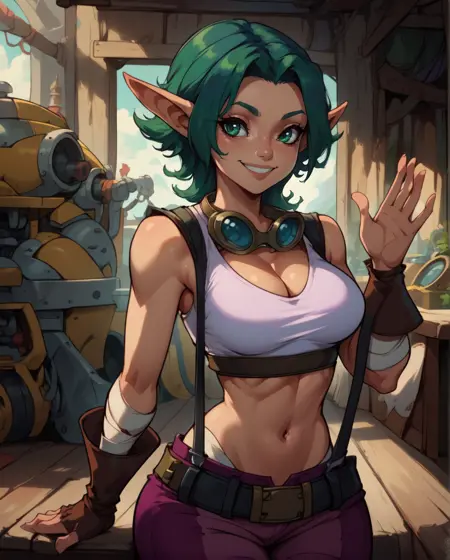 Kiera,双色绿色头发,尖耳朵,绿色眼睛