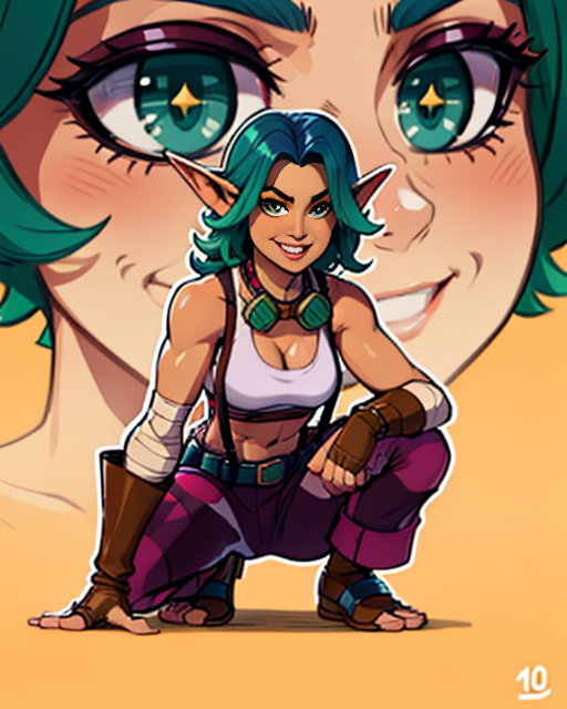 Kiera,双色绿色头发,尖耳朵,绿色眼睛
