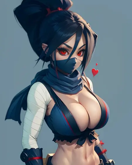 kunoichi,红色眼睛,马尾辫,深蓝色头发,尖耳朵,