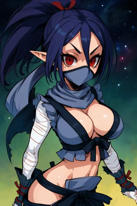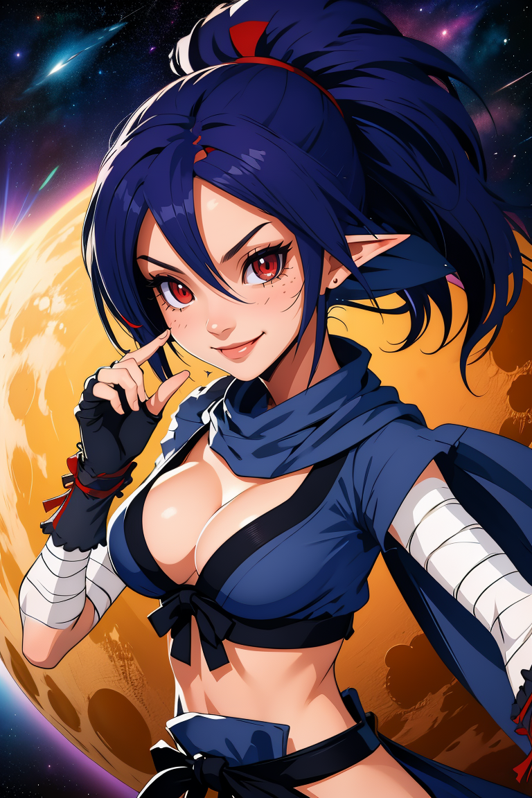 kunoichi,红色眼睛,马尾辫,深蓝色头发,尖耳朵,