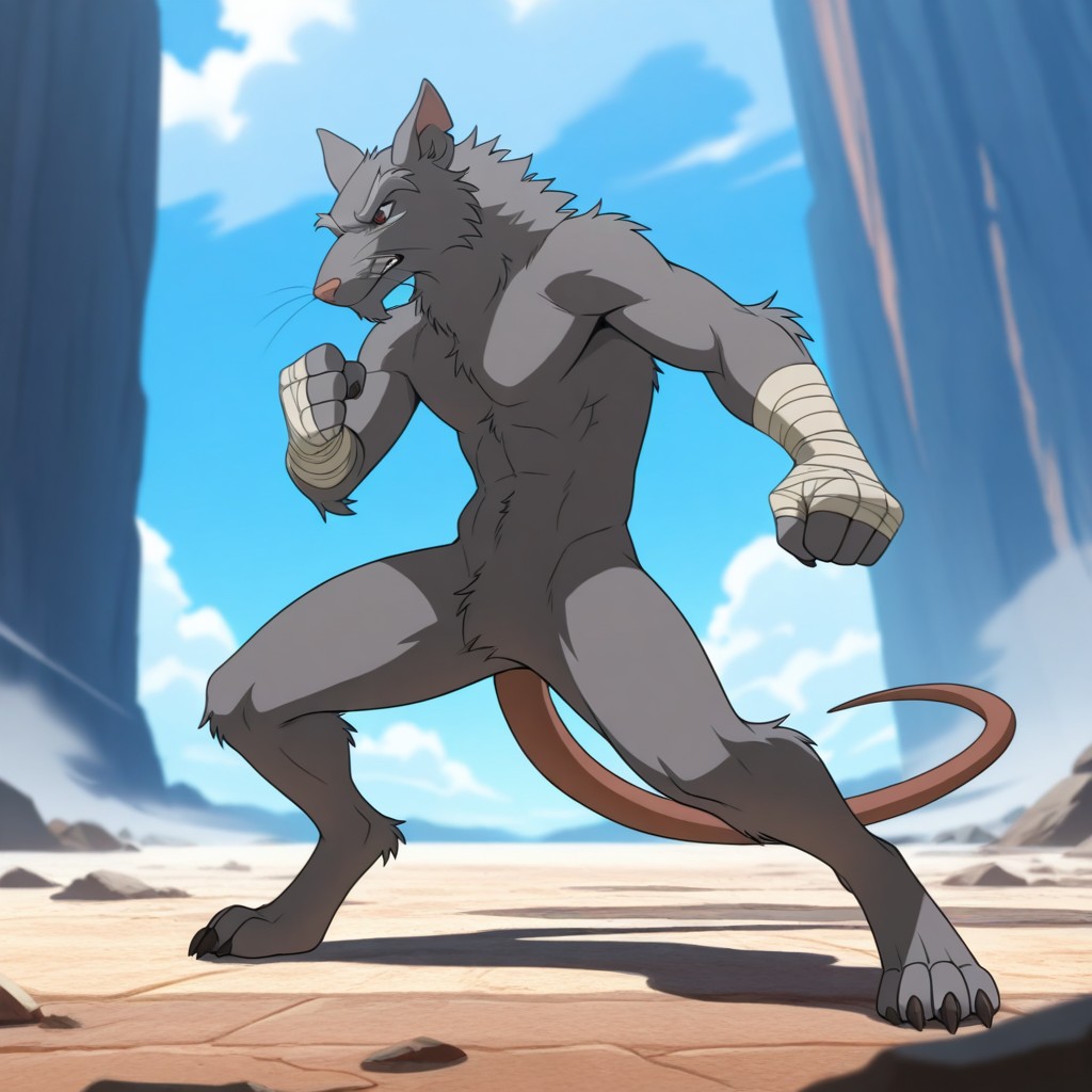 Splinter03IL, semi-anthro, male, furry, grey fur, red-orange kimono