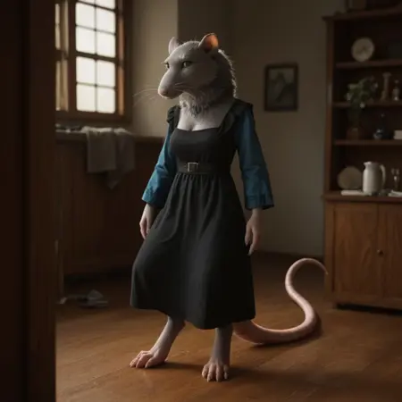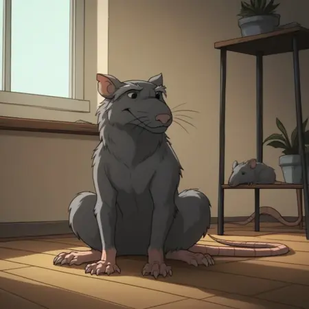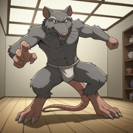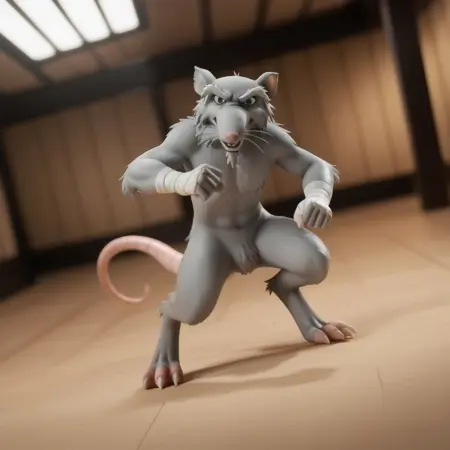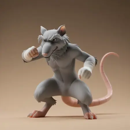 Splinter03v2, feral, male, rat, grey fur, black eyes, rat tail,